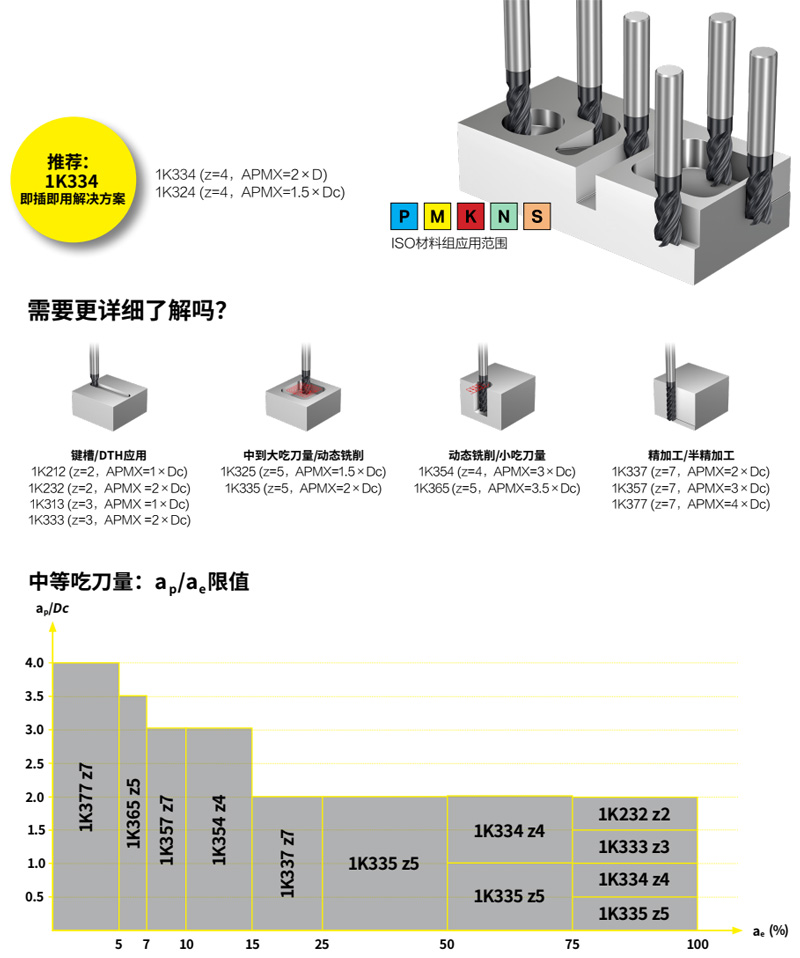 易于使用,易于選擇,帶四個排屑槽的立銑刀1K334帶有即插即用功能。