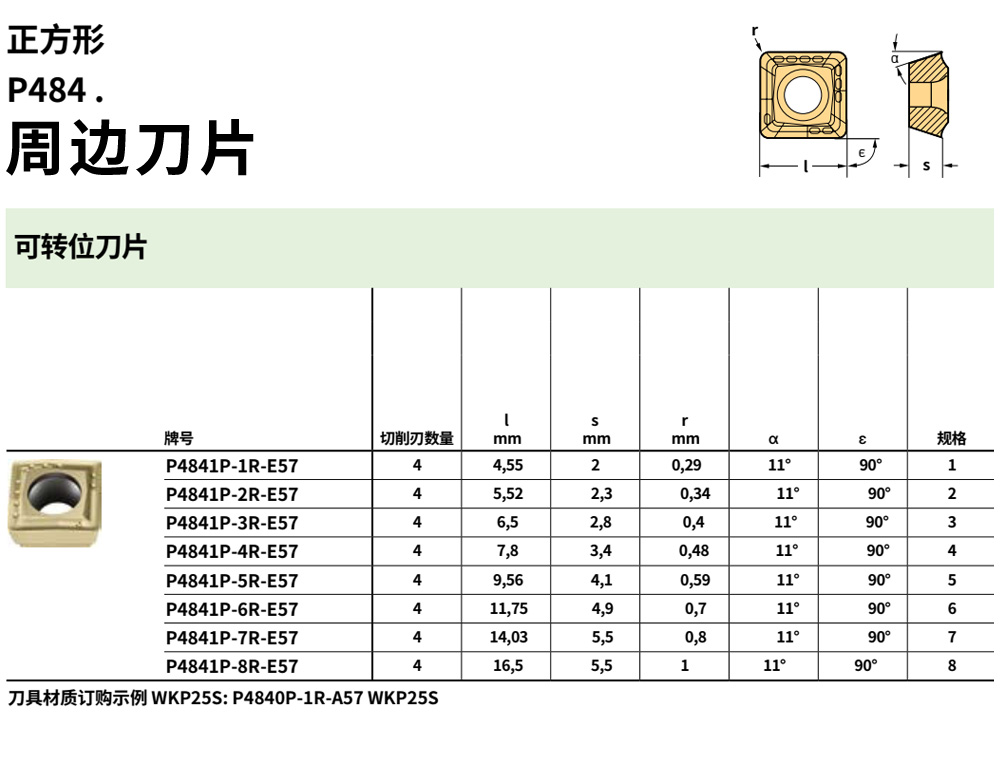 U鉆刀片P4840C/P4841P-1R-A57/E67/E57/E77