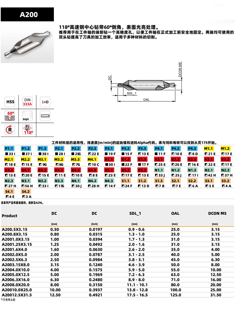 A200 HSS 公制60度中心鉆 DIN 333A 1.00 mm x 3.15 mm 118°高速鋼中心鉆帶60°倒角,表面光亮處理。推薦用于在工件軸的端部鉆一個(gè)高精度孔,以便工件軸在正式加工前安全地固定。兩端均可使用的雙頭鉆提高了刀具的加工效率,適用于多種材料的切削。