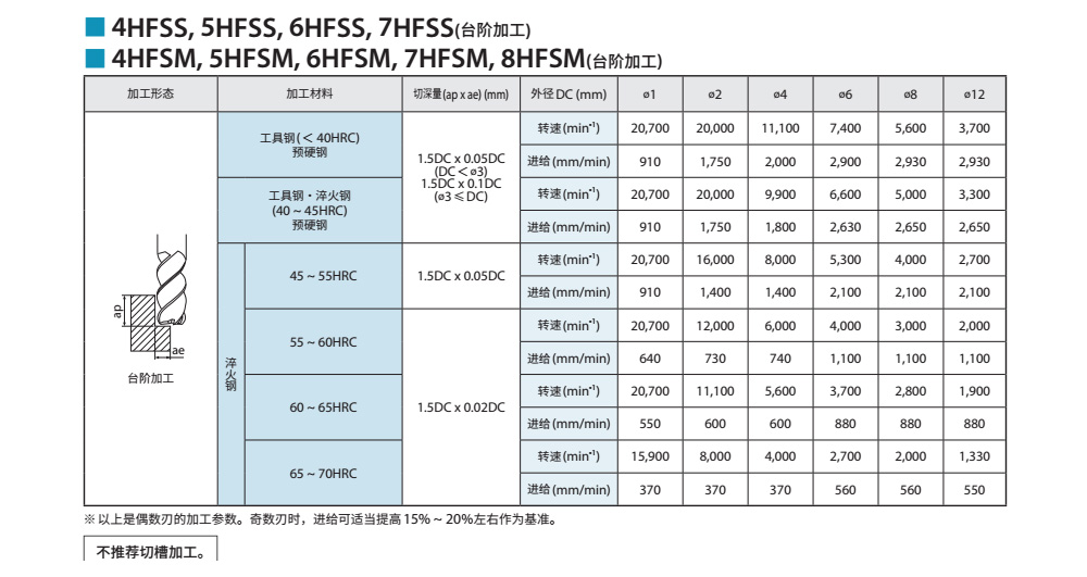 模具淬火鋼60HRC 68HRC 65HRC 55HRC 高硬度材用多刃·負(fù)前角刃尖強(qiáng)化型·高硬度材精加工;高效率加工4HFSS, 5HFSS, 6HFSS, 7HFSS 短刃型),采用對(duì)應(yīng)高硬度材的PVD 涂層。大芯徑實(shí)現(xiàn)高剛性。實(shí)現(xiàn)刀具長(zhǎng)壽化及穩(wěn)定加工的高硬度材用立鐵刀。 切刃前角為負(fù)(負(fù)前角規(guī)格)、提升刀尖強(qiáng)度和排屑性能。