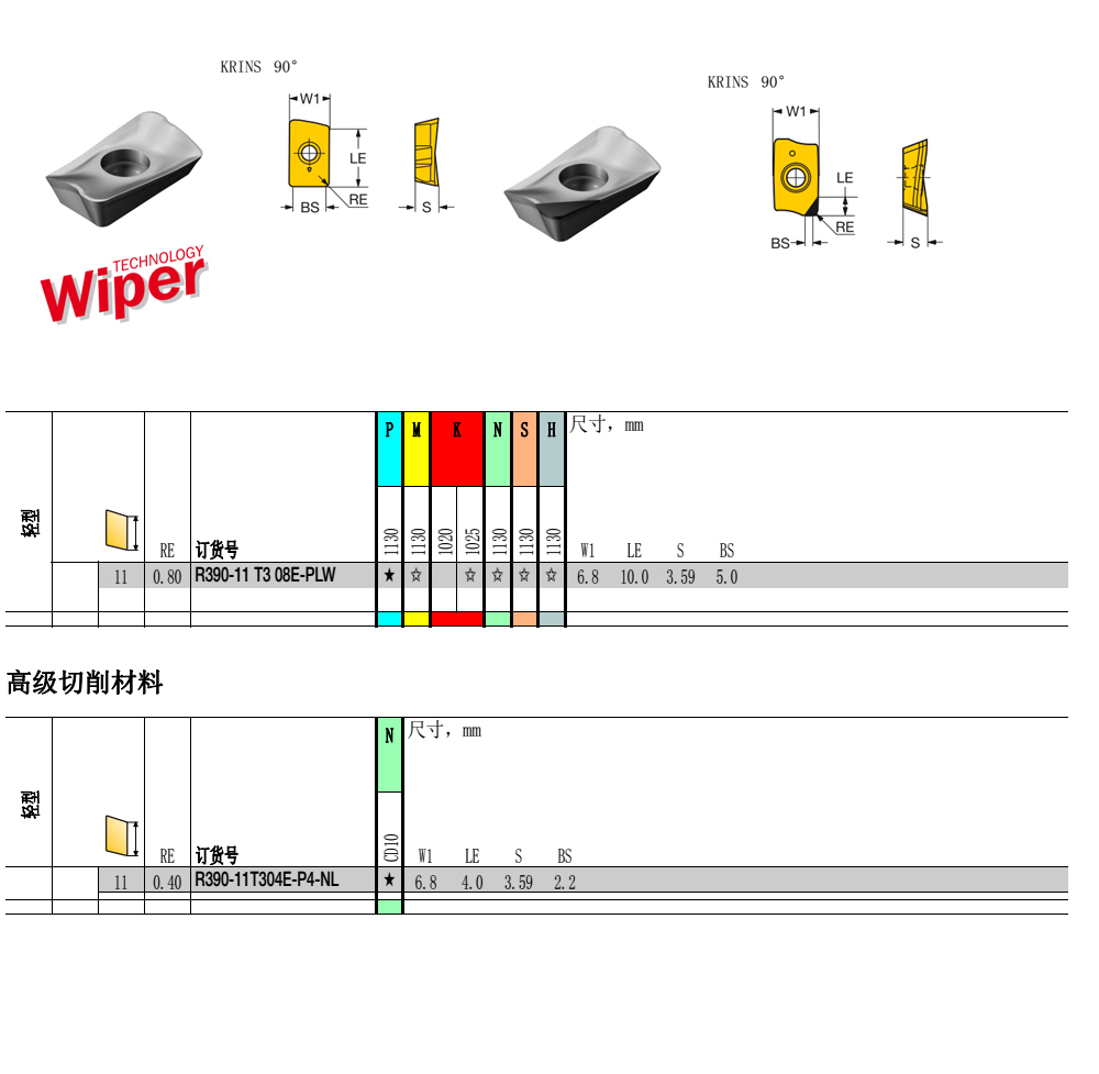 | 90度直角銑刀片 | R390-11T304M-KM 3330 | 瑞典STWK | 鑄鐵 | 3330 | 在線聯(lián)系 |