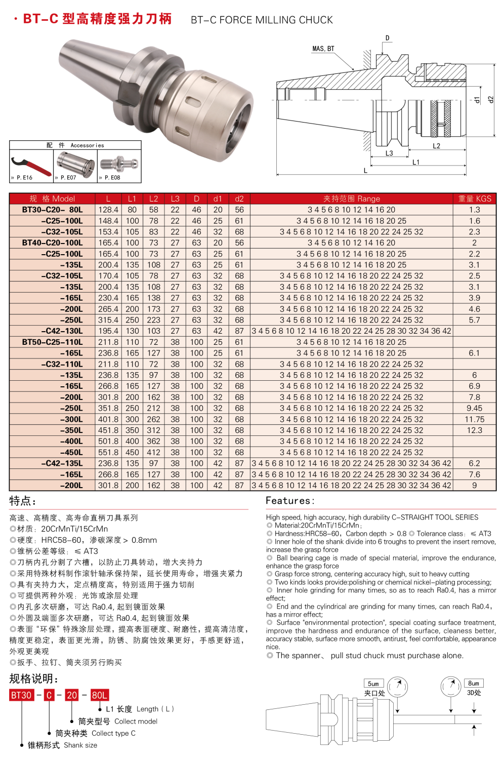 高速、 高精度、 高壽命直柄刀具系列強力銑刀柄