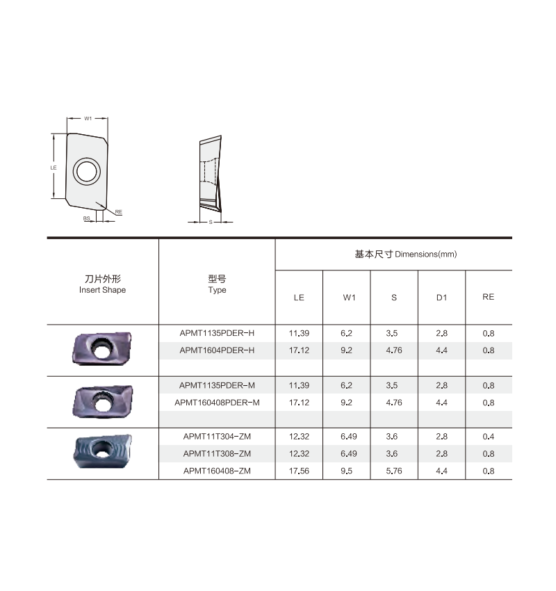 • R0.8圓弧,方肩銑刀粒,APMT1604PDER-H2L,OP1215(通用/紫紅)